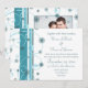 Winter Holiday Wedding photo invitations in classic turquoise and white with elegant snowflake and swirl design, Customizable with your wedding details. Available in matching winter holiday stamps, envelopes, labels and cards. Perfect for a Christmas or winter wedding.