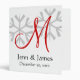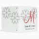 Winter Wedding Keepsake Binder with grey snowflakes, red monogram initial, black text for the bride and groom names. Elke Clarke© Personalize with your text or change the design or background.