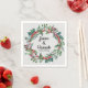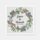 Custom Christmas wedding paper napkin, Personalized Couple name date favour, mr and mrs reception serviette, just married newly wed decor, modern bride groom winter holiday, December January elegant classic script, engagement party holly branches greenery, keepsake personalised white green silver, red berries botanical rustic farmhouse, vintage watercolor pine fir foliage