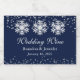 Mini Winter wedding sparkling wine bottle labels done in navy blue, with graphics of silver glitter and snowflakes. Personalize the text for your wedding favours.