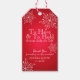 Red winter gift tag with white decorative snowflakes for your winter wedding, perfect for warm scarves or mitten favours. Red snowflake elegance design will compliment our winter wedding invitation set.