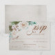 Wedding RSVP card with editable meal options and decorated with a bouquet of winter white roses, cotton, pine greenery and eucalyptus. This watercolor floral and foliage design sits on a neutral background with elegant calligraphy in copper brown. Perfect for fall, winter, new year and christmas wedding themes. Please browse my store for alternative response card, online rsvp and matching items in the winter white rose collection.