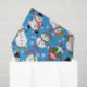 Dressed in their best holiday outfits, these jolly snowmen are scattered all over this colourful holiday paper with a sprinkling of snowflakes on a blue background.