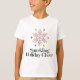 A charming design featuring an intricate snowflake surrounded by colourful ornaments, radiating holiday spirit and joy. Perfect for festive t-shirts, this artwork captures the magic of winter in a delicate and playful way.
