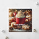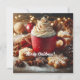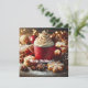 Winter whipped cream hot coffee in a red mug with cookies holiday card.