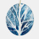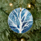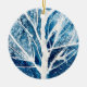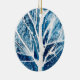 Winter theme blue and white watercolor painting of a white birch tree with snow background. Arty original artwork with a Christmas theme. Blue and white Christmas.