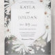 AVAILABLE WITH OR WITHOUT A QR CODE TO SCAN. This simple yet elegant design has a frame of winter white flowers on a soft white blur overlay with a dark grey background. The entire invitation is highlighted with white sparkles. The front flap contains the bride and groom's first initials. This design is available with or without dinner options on the RSVP card. Go to my store, Simply Farmhouse Press to choose either version. Personalized All-In-One invitations are a unique combination of both a beautifully printed custom invitation with an easy to tear off perforated RSVP postcard. And they are so easy to use! You simply fold, then seal the back flap with the three included clear stickers, and mail. And when your guests receive your custom invite, they just tear the perforated RSVP Card off and drop it back in the mail to you!