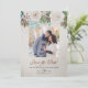 Photo Save the Date with winter white roses, pine greenery and eucalyptus. This watercolor floral and foliage design sits on a neutral background with elegant hand lettering in copper brown. Perfect for fall, winter, new year and christmas wedding themes. Please browse my store for matching invitations and stationery in the winter white rose collection.