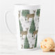 Accent your winter holiday home with this uniquely designed whitetail deer latte mug. This mug features a winter scene with an evergreen tree, snowflakes, and deer. Use this mug at Christmas and throughout the winter season.