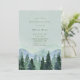 Ce design présente des arbres de Noël vert émeraude et vert verdâtre et de la neige avec des collines bleu poussiéreux et vert clair. Idéal pour votre fête mariage pendant le temps de Noël !