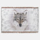 A beautiful painting of a wolf's head, with snow on it, is the focal point on this handsome throw blanket. Graphics of snowflakes surround the outside edges of the blanket to frame the wolf. Customize to add your own text to this lovely blanket.