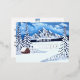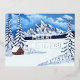 Une carte de Noël en papier peint avec une belle scène hivernale comprenant des montagnes enneigées, des verdures et des cabine rustiques. L'image et le texte peuvent être personnalisés. Vous avez également la possibilité de supprimer le texte. Oeuvre originale de W.B.