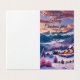 The card features the scenic landscape from the image, transformed into a snowy paradise. The mountains are dusted with white snow, and the dramatic clouds in the sky have taken on soft hues of pink and lavender, reminiscent of a magical winter sunset.