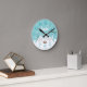 This cute and fun clock can be personalized with a name. It features an adorable arctic fox family in a winter wonderland setting with snow capped trees and a blue bird on a branch with holly. In the background is a teal blue green sky and falling snowflakes.