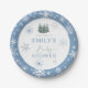 Winter Wonderland Baby Shower Paper Plates with pine trees and snowflakes.
