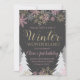 Winter Wonderland or Winter Onederland Birthday invitation with pink, gold and silver glitter snowflakes and glitter winter trees with a chalkboard background.