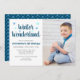 Winter wonderland kids birthday with blue snowflakes. Photo template licensed via Pixabay under CC0 and must be replaced with your own photo