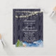 You will love this watercolor navy blue wood background with string of snow lights, watercolor blue mountains, green Christmas trees, Christmas candles and snow. Great for a winter wedding!