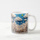 This winter wonderland mug design features a serene paper-cut style landscape of snow-covered pine trees, rolling hills, and fluffy clouds set against a bright blue sky. Delicate snowflakes drift around a glowing sun, creating a cheerful contrast between cool and warm tones. The layered look gives the design a handcrafted, cozy charm—perfect for sipping hot cocoa, coffee, or tea during the holiday season. It captures the peaceful beauty of winter mornings and the joy of Christmas time.