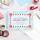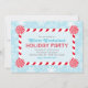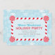 Le design d'invitation à la fête de l'hiver à thème de la région des merveilles comprend un cadre de sucre de canne de menthe rouge et l'arrière - plan a un motif de flocons de neige. Couleurs bleu glace, turquoise, rouge et blanche.