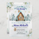 Celebrate the arrival of your sweet little one with this charming Winter themed Baby Shower invitation. The design features a cozy watercolor gingerbread house topped with snowy icing, surrounded by a winter forest of pine trees and icy blue floral accents.