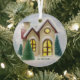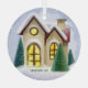 This soothing Winter Wonderland Glass Christmas ornament is very soothing to look at. A beautiful house at night nestled between vibrant coloured Fraser fir trees amidst the snow. Change the family name to your other name or whatever text you desire.