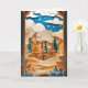 This enchanting Christmas card features a layered paper-cut style winter scene, with snowy hills, tall evergreens, and a cozy cabin nestled beneath drifting clouds and falling snowflakes. The rich blend of golden tones, icy whites, and deep blue sky creates a magical holiday atmosphere that feels both elegant and heartwarming. Perfect for sending season’s greetings, it captures the quiet beauty and wonder of Christmas in a snowy woodland.