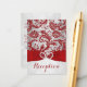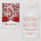 This elegant red and silver grey floral FAUX glitter damask pattern wedding reception enclosure card has a background of assorted white snowflakes on it and a PRINTED red ribbon and bow with a pair of diamond jewel and FAUX glitter joined hearts on it that matches the wedding invitation shown below. You can also customize it to be a directions or information card, a gift registry card, a wishing well card or charity card by changing the text accordingly. Please contact niteowlstudio@gmail.com if you require any changes.