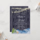 You will love this watercolor navy blue wood background with string of snow lights, watercolor blue mountains, green Christmas trees, Christmas candles and snow. Great for a winter wedding!