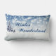 Winter Wonderland Pillow with blue text. You can customize the image and the text with your own.