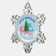 This delightful SnowflakeFramed Ornament has two snowmen, in front of Christmas tree. Both snowmen are wearing their winter hats and scarves. All text on this ornament can be customized.