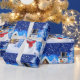 Winter wonderland Christmas wrapping paper. Winter wonderland snowman Christmas wrapping paper. Cute winking snowman in a magical snowy winter setting.