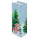 This wine bag design features two snowmen, in front of Christmas tree. Both snowmen are wearing their winter hats and scarves. This design wraps around the bag.