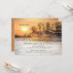 A bridal shower invitation featuring a romantic winter wonderland scene at sunset with sparkling snow and string lights. On the back is a QR code template to which you can easily add your own URL.