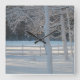 This wall clock features the morning after a snow storm in Connecticut.