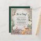Budget-friendly rustic winter baby shower invitation with cute watercolors of woodland animals, florals, greenery and an overlay of gold stars and snowflakes. "It's a Boy!" or "It's a Girl!" and the mother-to-be's name are written in a hunter green script.