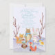 Winter scene with a snowy background, modern winter wonderland baby shower party theme with woodland animals: squirrel, bear, owl, fox, bird and rabbit in the snow. There's brown twigs on the sides with a bluish winter tree. Perfect for any winter celebration or baby shower. Personalize with your party information all text is fully customizable.