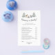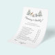 This winter woodland animals baby shower Mummy or Daddy game is perfect for a gender neutral woodland baby shower or sprinkle. The classic rustic design features a wintery scene with pine trees and woodland baby animals. The calligraphy is dark grey in colour, with contrasting simple typography, on a basic white background. Personalize the game with the name of the expectant mother and the date. QSD118