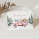 Winter thank you card featuring a watercolor vintage blue truck and woodland animals. A sweet seasonal way to share your gratitude.