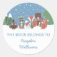 Cute book sticker featuring a fox, bear, owl, squirrel, and rabbit out in the snow.