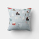 Add initials to this modern and trendy winter Scandinavian folk art styled graphic pillow. It has a winter woodland village theme and colours pale blue, white, red and black.