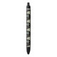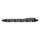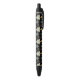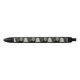 Write out some lovely Christmas cards this this cozy patterned pen. It has assorted winter trees in green on a black background, with yellow stars and branches scattered throughout. /cao/c