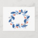 Winter wreath. Blue leaves and red berries Postcard