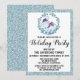 Winter Wreath Christmas Holiday Party Blue Glitter Invitation