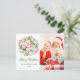 Votre photo de famille est à droite. Une fleur moderne blanche poinsettia, verdure et fraise rouge est à gauche. Salutation de vacances est ci-dessous. Votre nom et l'année suivante.