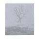 A cold and windy 3D landscape in winter, created in Vue. On top of a hill white with ice and snow, against a stormy grey sky with rain or sleet falling steadily, a lone, bare maple tree stands with a wooden bench under it.