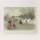 George Blair. People sledding and skating on ice; bridge left, with observers, building beyond. Foreground left, man kneeling to fix his partner's skate.