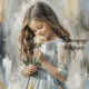 This ethereal composition masterfully captures the delicate interplay of light and shadow through impressionistic brushstrokes. The piece achieves remarkable emotional depth through its muted palette of winter whites, cool greys, and gentle touches of powder blue. The central figure emerges from abstracted backgrounds with remarkable clarity, while her dress dissolves into gestural strokes that create a dreamlike quality.