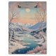 Surprisingly: Ice doesn't always freeze solid! Tiny air bubbles and impurities can create stunning patterns and textures within the frozen surface. This serene design captures the peaceful beauty of a winter landscape, featuring a tranquil lake surrounded by snow-covered trees and majestic mountains. The setting sun casts a warm glow over the scene, creating a breathtaking vista that evokes a sense of calm and wonder. Perfect for adding a touch of winter magic to any project.