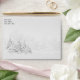Beautiful envelope, perfect for the holidays, features winter landscape with snowy evergreen trees. Coordinating invitation available.